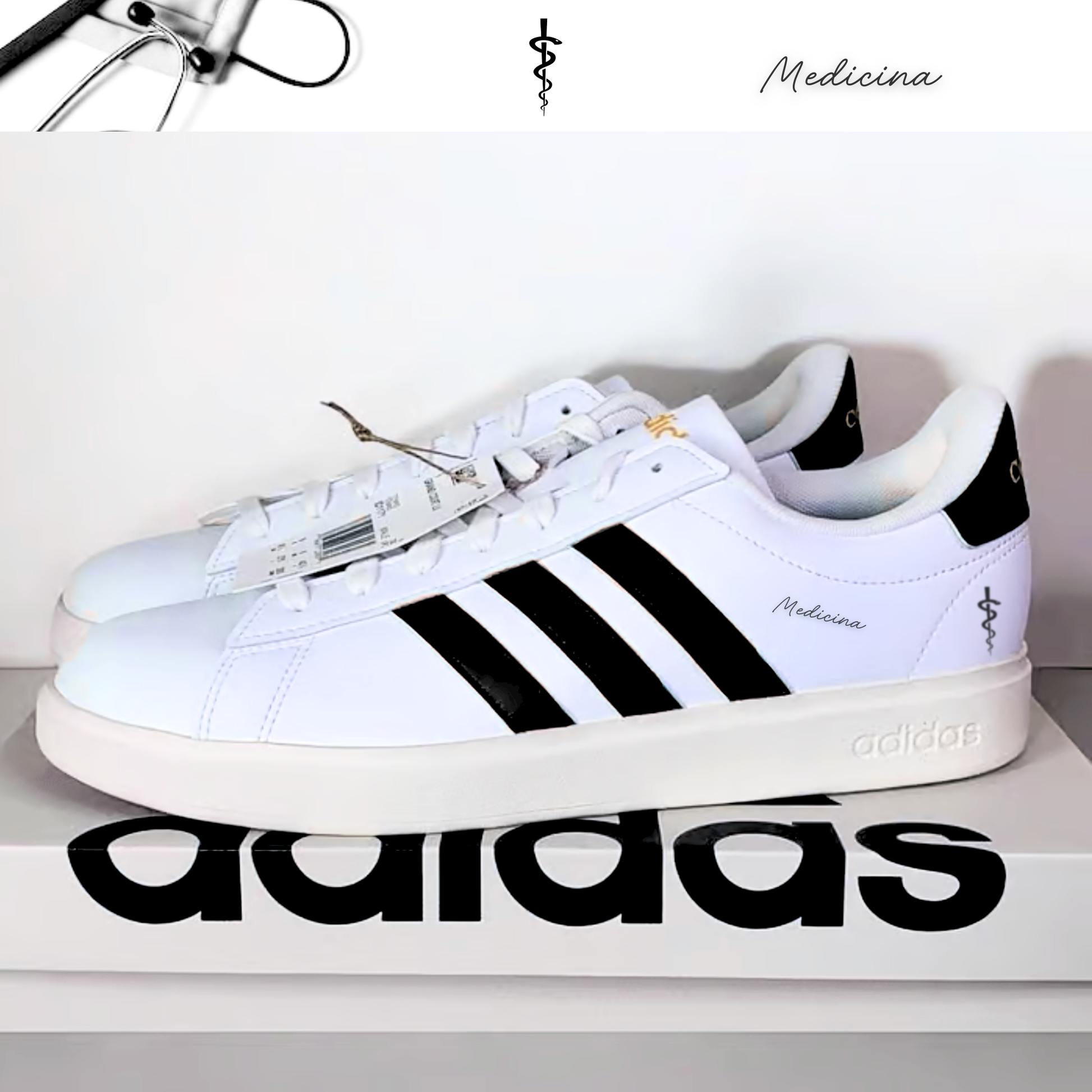 ITENS INCLUSOS: 1x Par de Tênis Adidas Grand Court ou VL Court 3.0 Customizados de Medicina + *BRINDE* 1x Caneca Oficial de Medicina