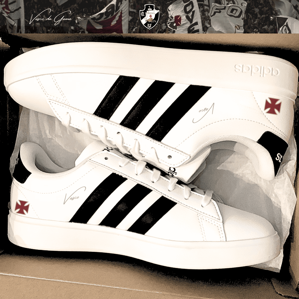 Que tal esse Tênis Adidas Grand Court Signature Customizado Vasco da Gama para se presentear ou presentear aquele seu amigo fanático pelo Gigante da Colina?!